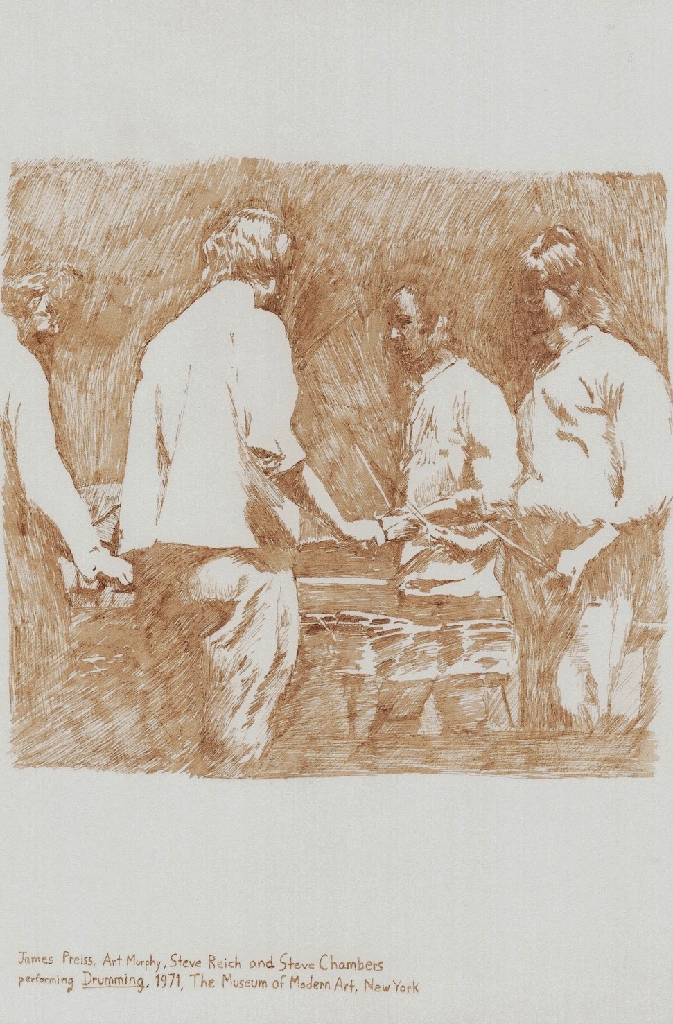 James Preis, Art Murphy, Steve Reich and Steve Chambers performing Drumming, 1971, The Museum of Modern Art, New York